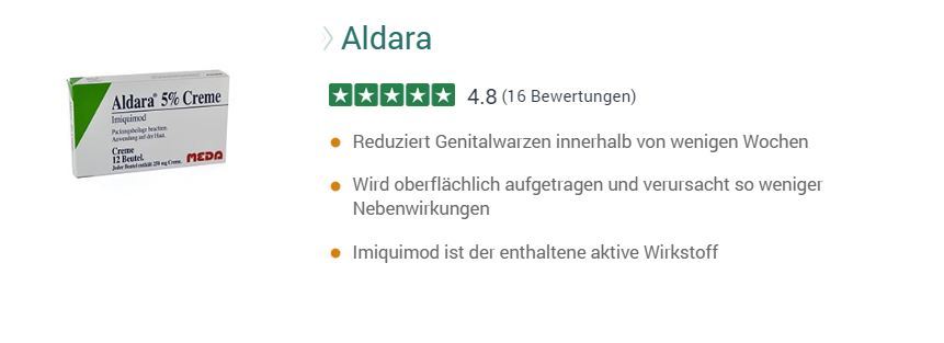 Imiquimod ist ein Wirkstoff mit immunmodulierenden Eigenschaften. Er ist sehr wirksam bei Feigwarzen (im Genitalbereich), kann aber genauso gut bei Flachwarzen zum Einsatz kommen. Der Wirkstoff ist in der Creme Aldara enthalten, welche Sie sich entweder von Ihrem Hautarzt verschreiben lassen oder bei 121doc (incl. Rezept) bestellen können.